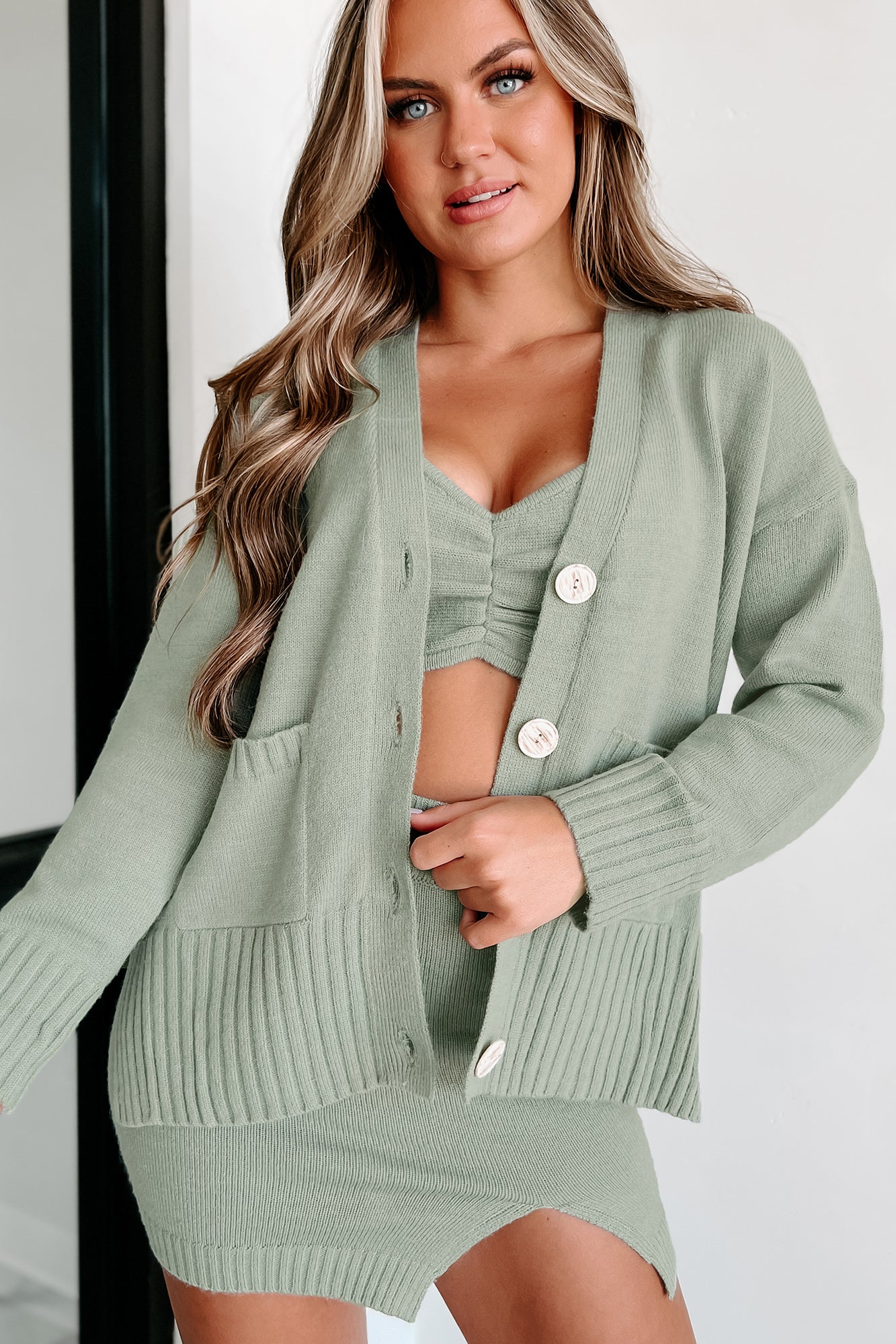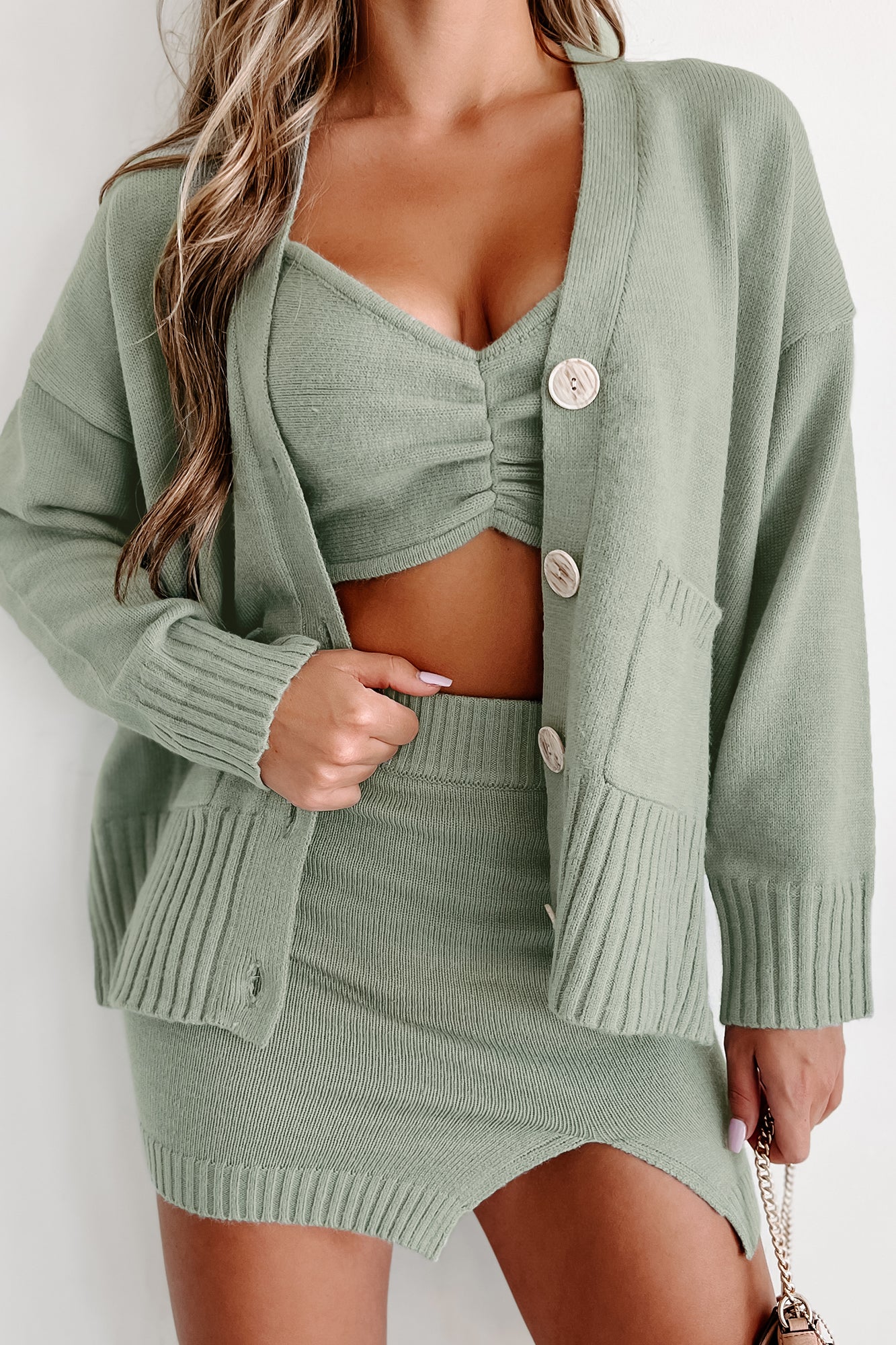 - Comes With 3 Pieces: Cardigan, Crop Top, & Skirt