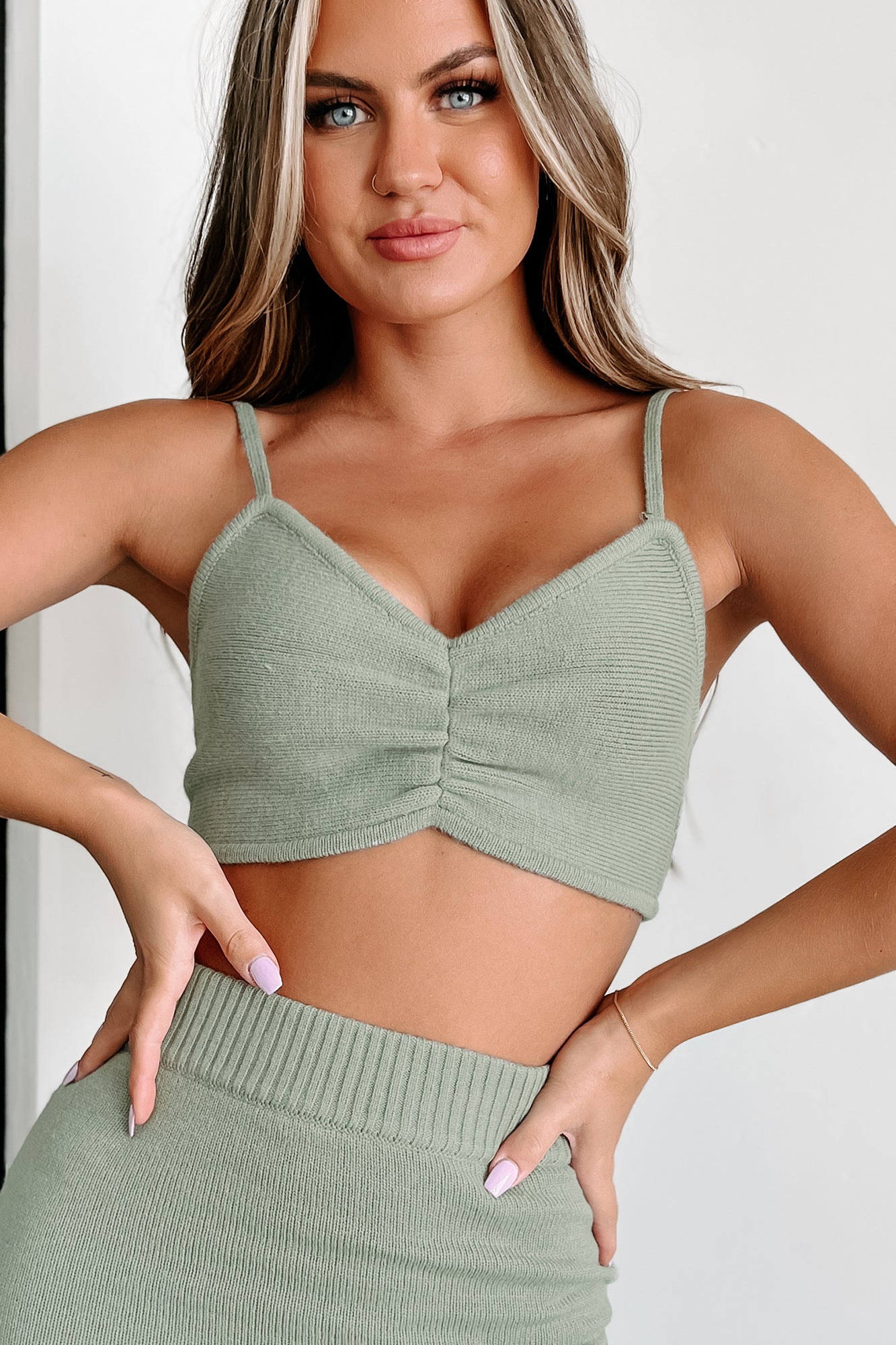 - Crop Top: Bralette Style, Adjustable Straps, Ruched Front, Cropped Length