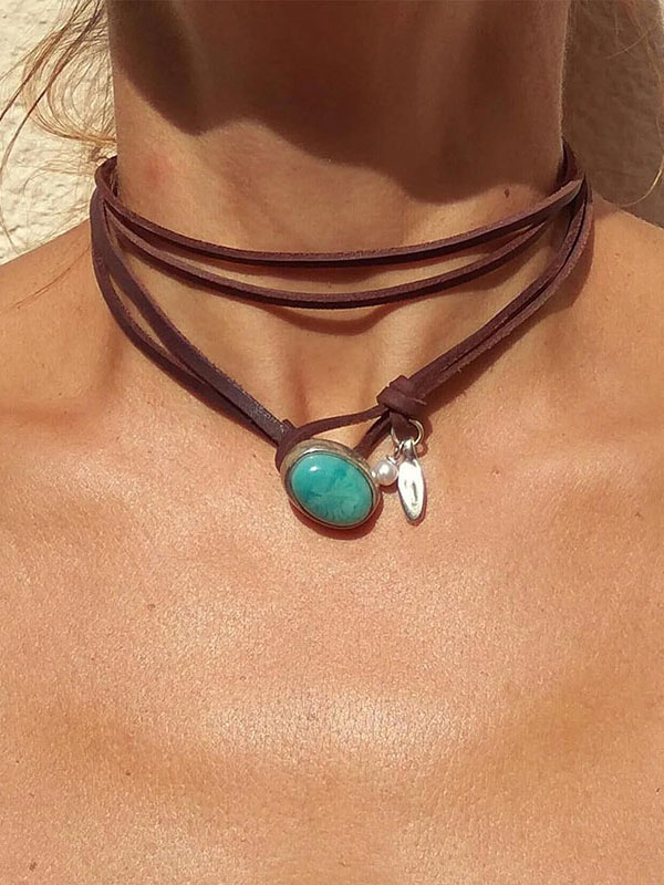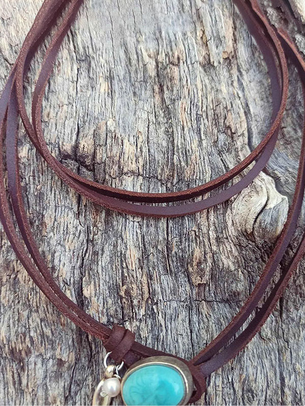 A leather necklace with a turquoise or metal accessory gives the whole look a more retro and modern look, and you can use it for any occasion.