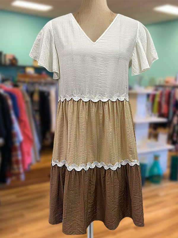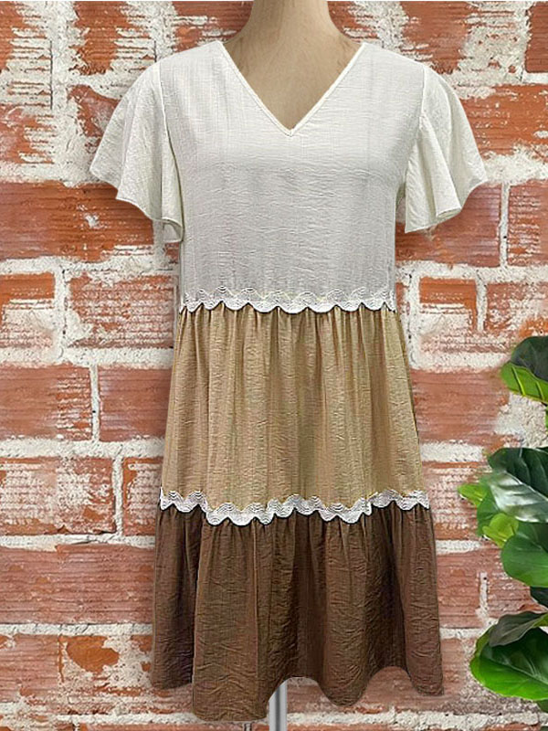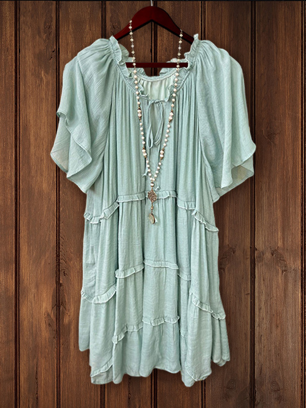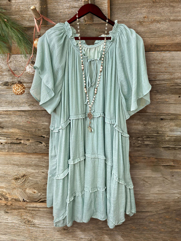 Pleated V-Neck Ruffle Dress