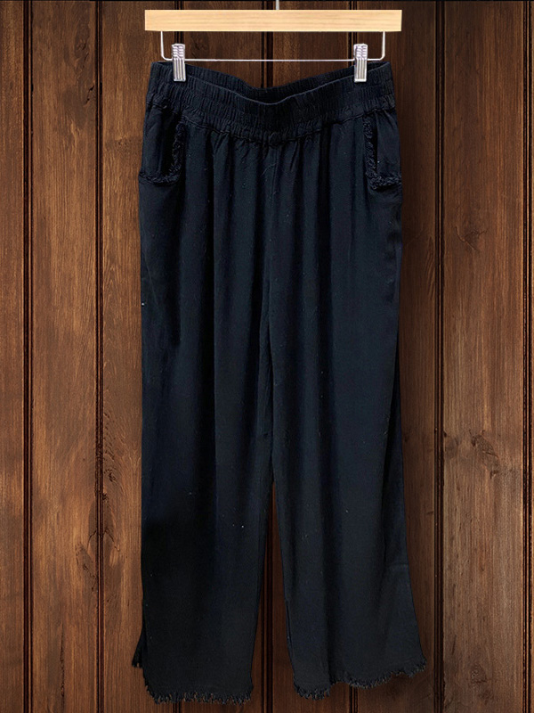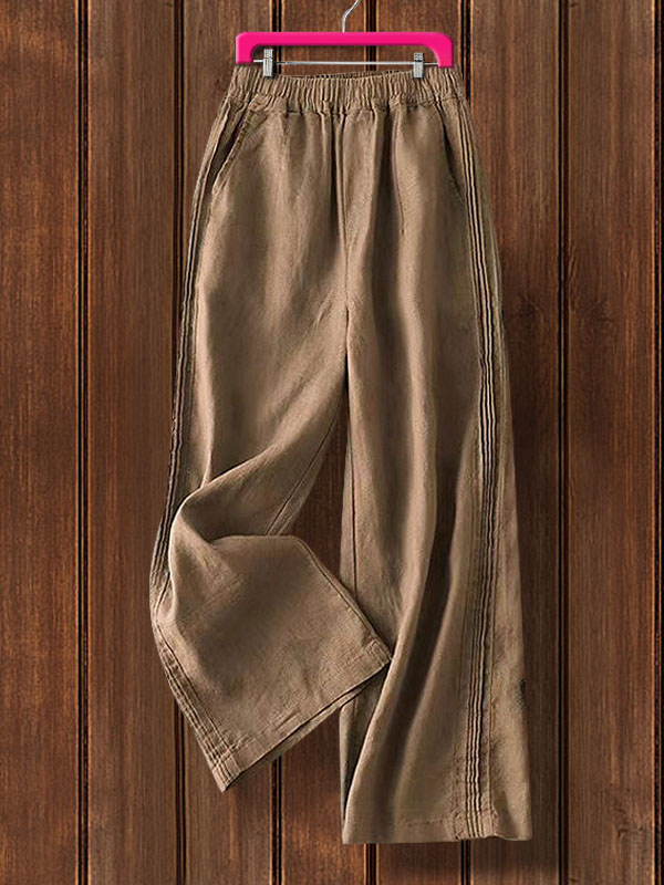 Cotton Linen Elastic Waist Ninth Pants