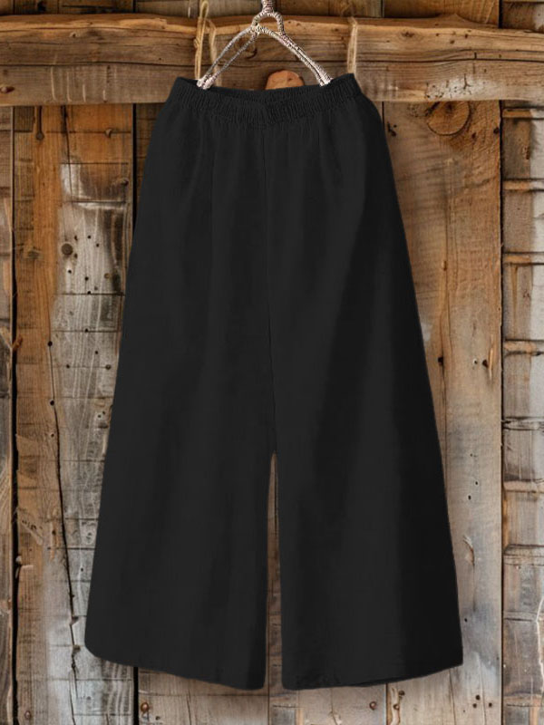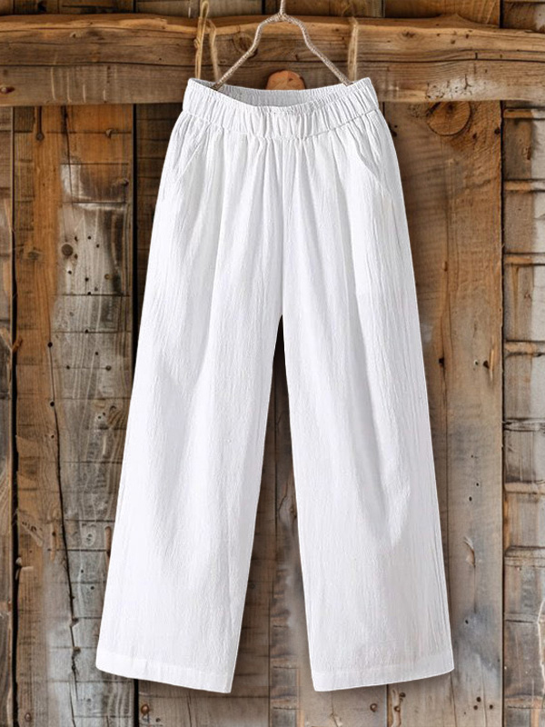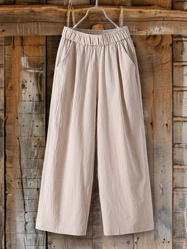 Cotton Linen Drape High-Waist Wide-Leg Pants