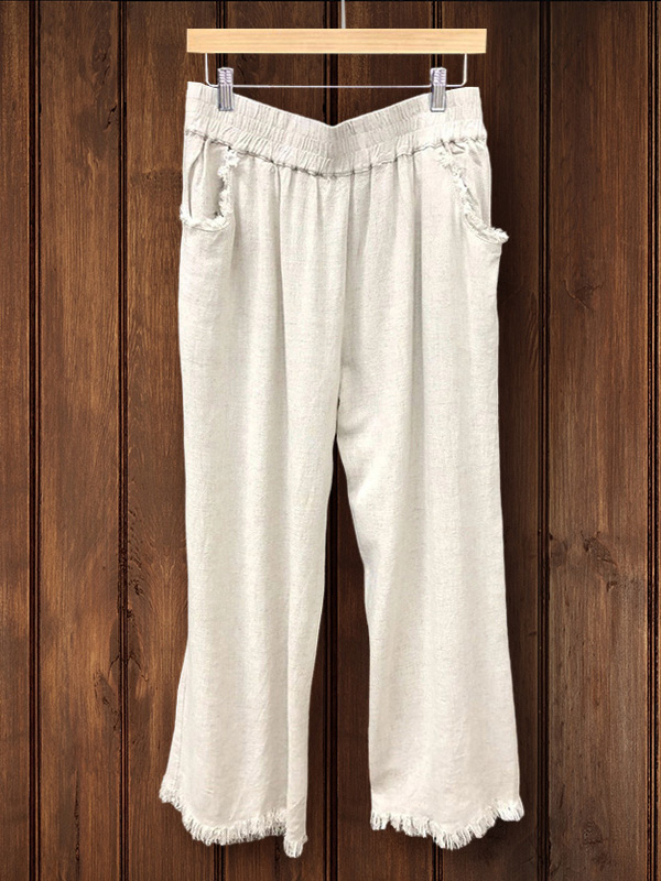 Cotton and Linen Raw Edge Trousers