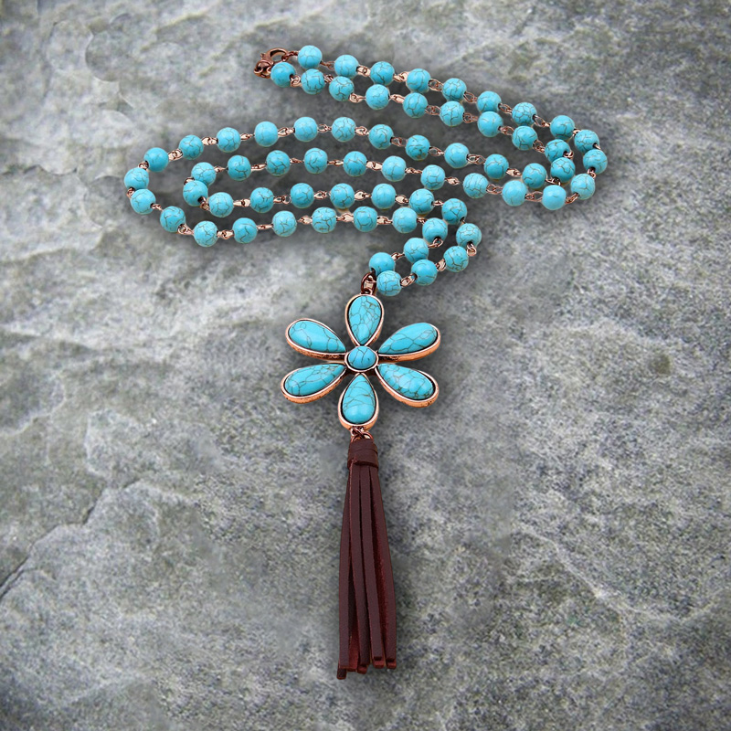 Turquoise Tassel Faux Necklace